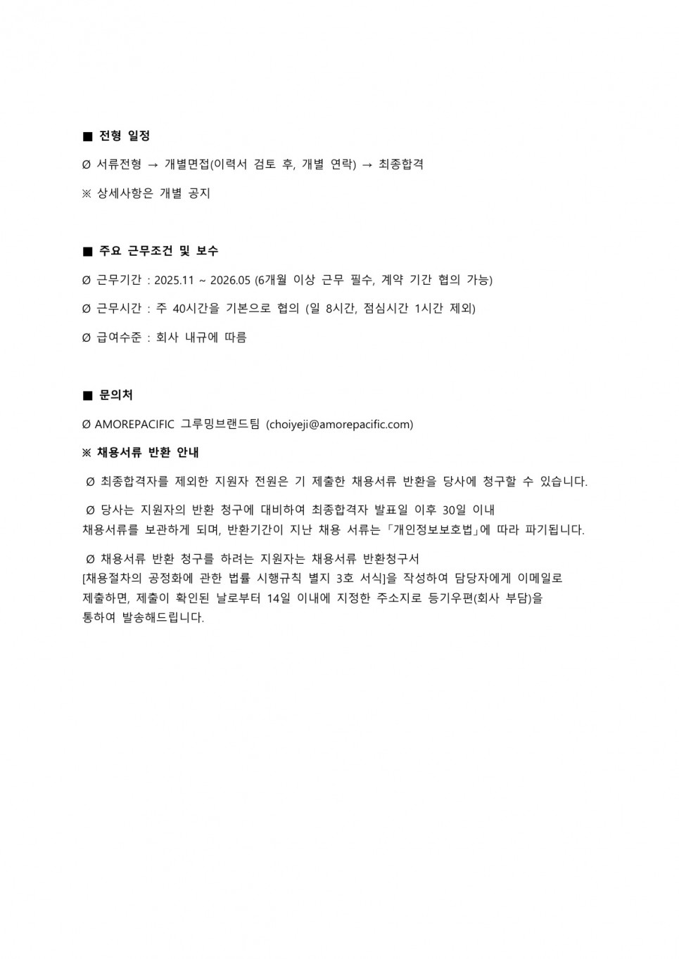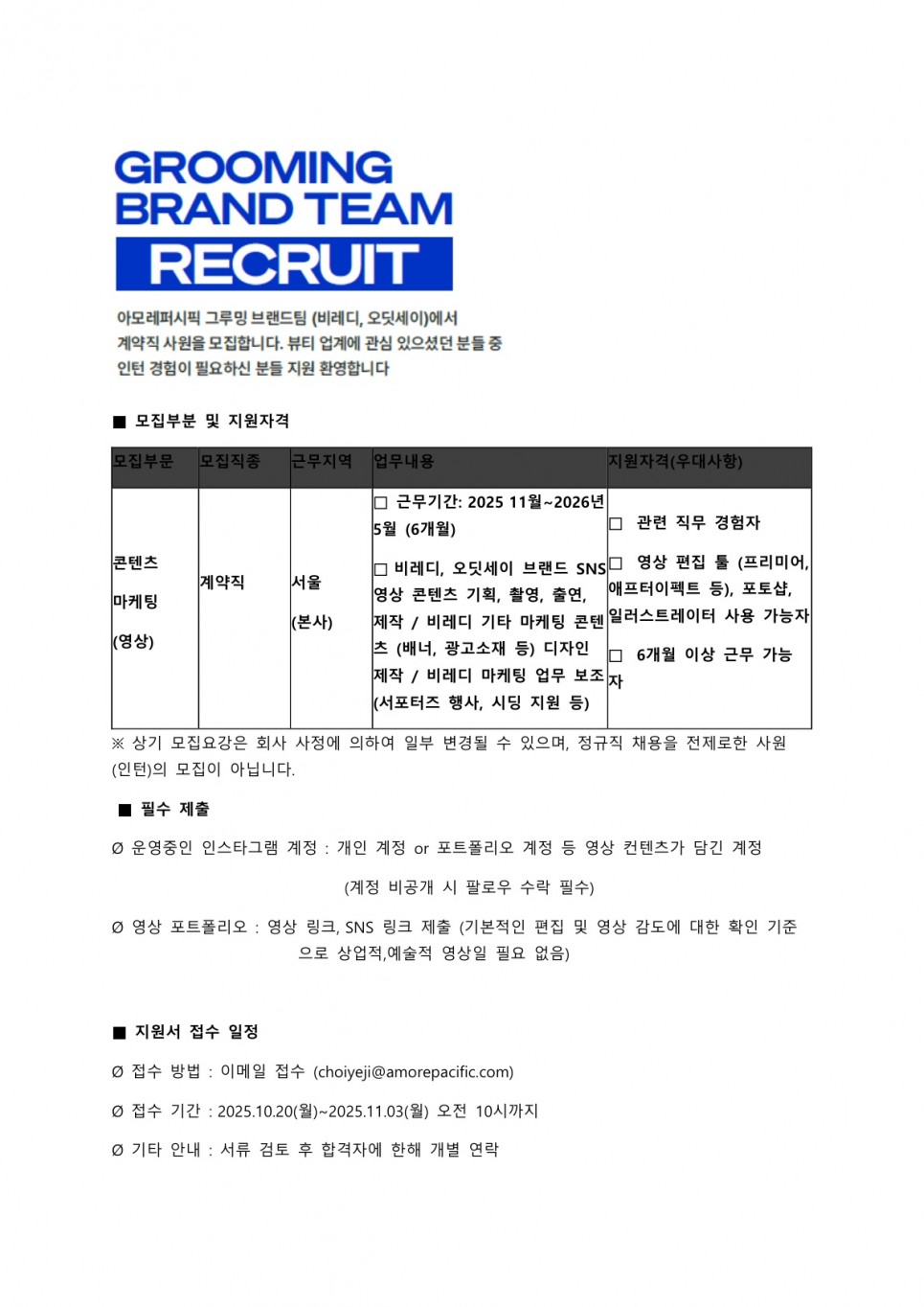 [취업·창업] 아모레 퍼시픽 콘텐츠 마케팅 (영상) 계약직 채용 공고