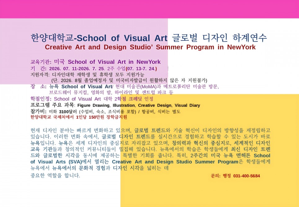 파견기관: School of Visual Art in New York [2026. 7. 11~7.25( 2주) 예정]