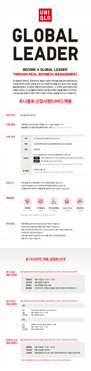 [유니클로] 신입사원(UMC) 모집 안내 (~9/30)