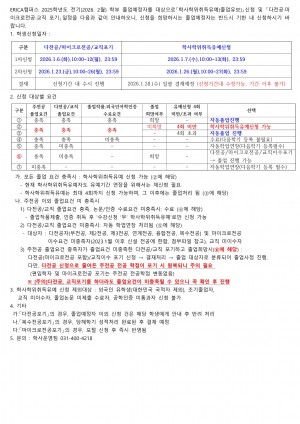 [ERICA] 2025학년도 전기(2026.2월) 졸업예정자의 「학사학위취득유예 신청」 및 「다전공.마이크로전공.교직포기」 안내
