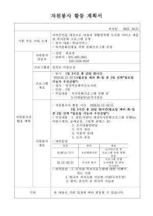 [사회봉사 사전선발 신청] 2025-겨울학기 디자인학부 사전선발_ [안산다문화작은도서관]