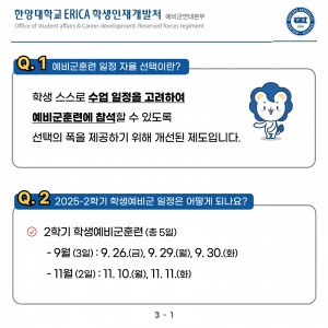 [예비군연대본부] 2025-2학기 학생예비군훈련 안내 (일정 선택 안내 포함)